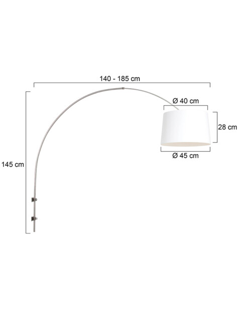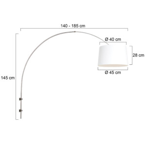 La lámpara de pared en arco de acero de la serie Sparkled Light de Steinhauer es una adición moderna y funcional a cualquier interior. La estructura de metal cepillado cuenta con un arco ajustable con una profundidad de 130 a 175 cm y una altura de 145 cm, lo que hace que esta lámpara sea versátil. El casquillo E27 inclinable permite el uso de fuentes de luz de hasta 40W.