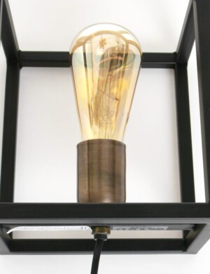 ¡Nos enamoramos de inmediato de esta llamativa lámpara de pared cuadrada industrial de Light & Living! La lámpara está hecha de metal negro. El marco cuadrado encaja perfectamente en un estilo de vivienda industrial. En la parte inferior de la lámpara, en el centro, hay un pequeño conector al que se le ha fijado un casquillo de color latón. El latón le da a esta lámpara sencilla un aspecto elegante. En ella encaja perfectamente una bombilla con filamento. La lámpara de pared es una aparición sutil en un rincón oscuro de la casa, pero al montar varias de estas lámparas de pared juntas, ¡crearás una poderosa declaración industrial en cualquier pared! Se ve hermosa contra un fondo oscuro, por ejemplo, como contraste con el color petróleo.
