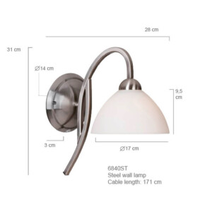 ¿Estás buscando una pequeña, simple pero elegante lámpara de pared? ¡La lámpara de pared Capri con pantalla de color ópalo es la solución! Las delicadas curvas y el diseño brillante en color acero completan el conjunto de esta lámpara.