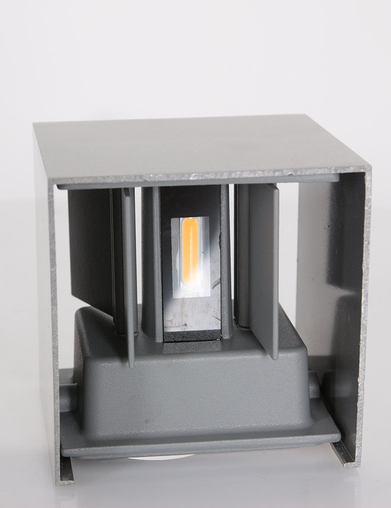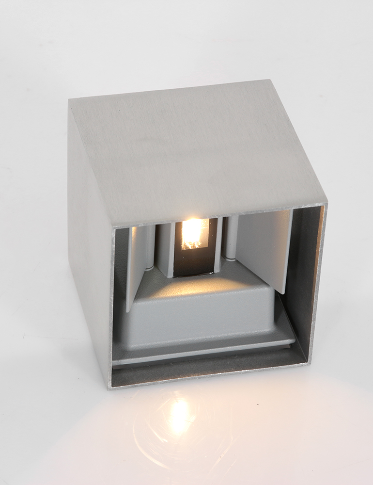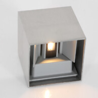 La lámpara de pared cuadrada de acero Steinhauer Muro tiene la forma muy sencilla de un cubo abierto, que sin embargo se enriquece con una textura inusual. El cubo gris está hecho de acero, lo que le otorga un encanto original y rústico. Es un complemento perfecto para la decoración industrial, con el fondo de planos de colores profundos y materiales contrastantes, como metal o madera. Sin embargo, también es una excelente opción para los amantes de los interiores ultramodernos.