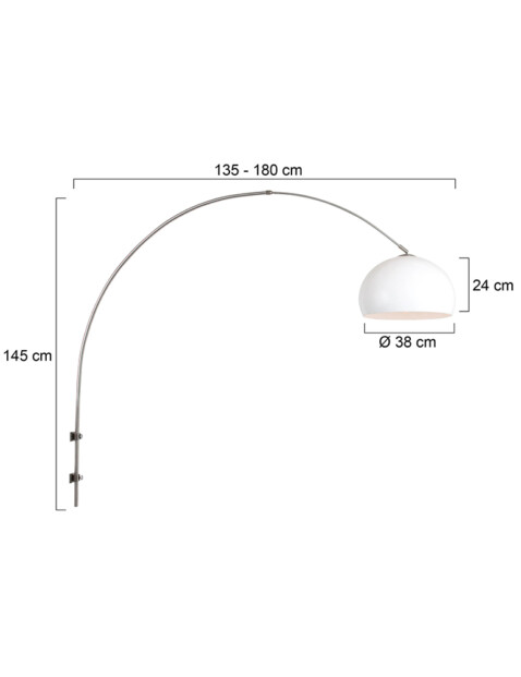 La lámpara de pared de acero con arco de la serie Sparkled Light de Steinhauer ofrece una iluminación moderna y acogedora para cualquier interior. El armazón de metal cepillado es ajustable con una profundidad de 130 a 175 cm y una altura de 145 cm, lo que permite que la lámpara se adapte fácilmente al espacio. El portalámparas E27 inclinable es adecuado para fuentes de luz de hasta 40W.