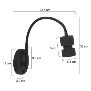 La lámpara de pared Natasja en negro ofrece una iluminación funcional y acogedora. El brazo flexible permite girar la cabeza del foco en la dirección correcta. Incluye una fuente de luz GU10 con tecnología de dimmable a cálido, ajustable entre 2200 y 2700 Kelvin con una potencia de luz de 350 lúmenes. Equipado con un práctico interruptor de encendido/apagado en la placa de pared, perfecto para al lado de la cama o en el área de estar.