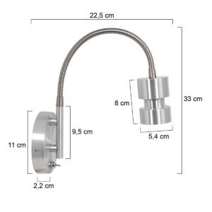 La lámpara de pared Natasja en acero es la lámpara de lectura ideal para cualquier interior. Gracias al brazo flexible, puedes dirigir el haz de luz exactamente donde lo necesitas. La lámpara se entrega con una fuente de luz GU10 que soporta la tecnología dim to warm, variando de 2200 a 2700 Kelvin con una salida de luz máxima de 350 lúmenes. El funcionamiento es sencillo a través del interruptor de encendido/apagado en la placa de pared.