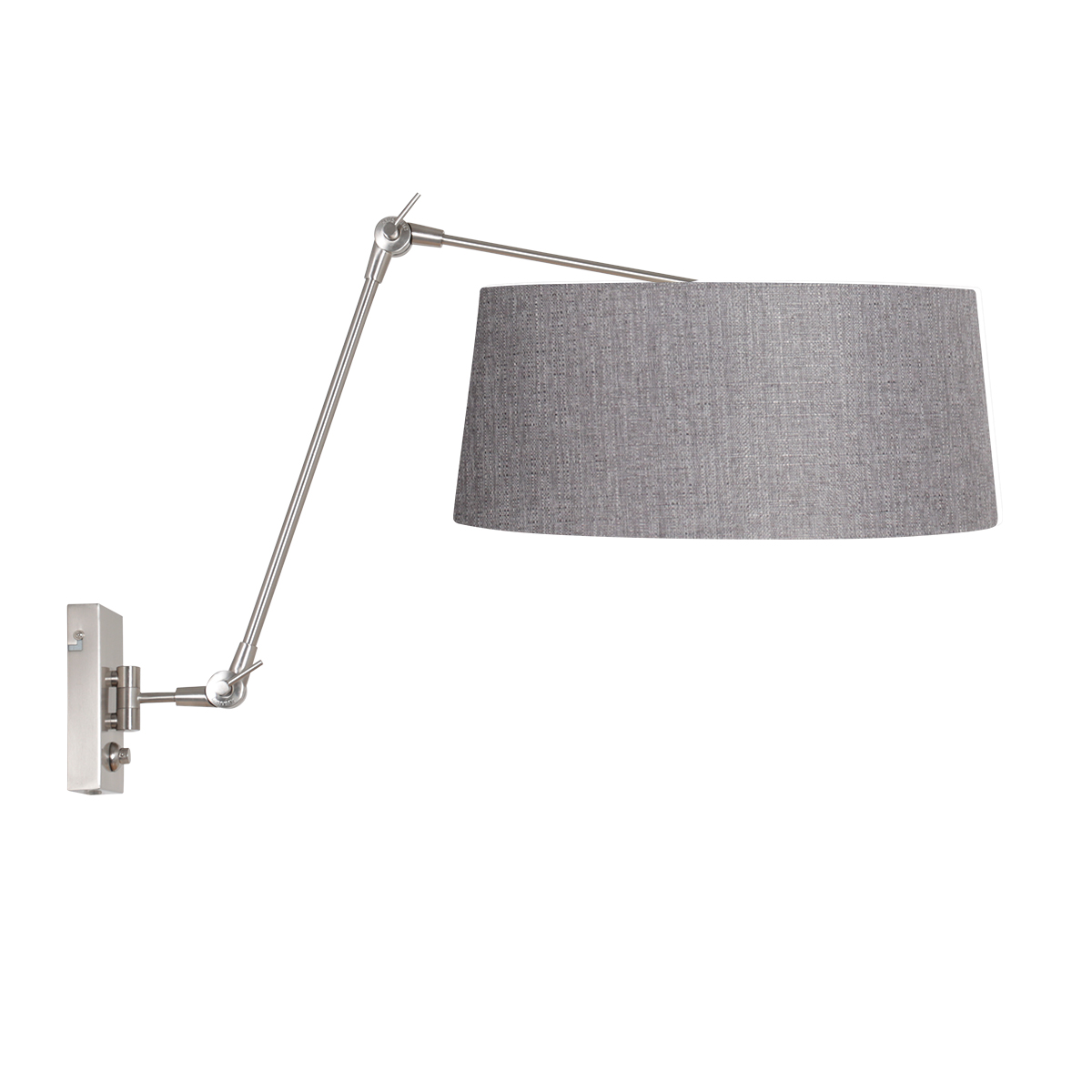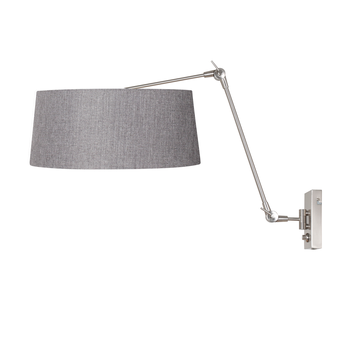 Apliqué de pared de acero cepillado con pantalla de lino gris Steinhauer Prestige Chic
