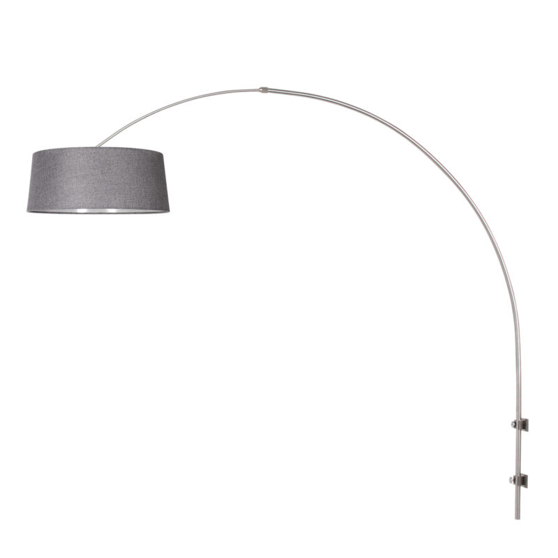 La lámpara de pared de arco color acero de la serie Sparkled Light es ideal para quienes buscan una combinación de funcionalidad y diseño moderno. El accesorio está hecho de acero inoxidable cepillado y tiene una altura de 145 centímetros. El gran arco es ajustable en profundidad entre 115 y 160 centímetros, lo que te permite posicionar la luz justo encima de la mesa, el sofá o el rincón de lectura. El casquillo E27 inclinable es adecuado para fuentes de luz de hasta 40 vatios y la lámpara se entrega con un cable de 200 centímetros de longitud con interruptor integrado.