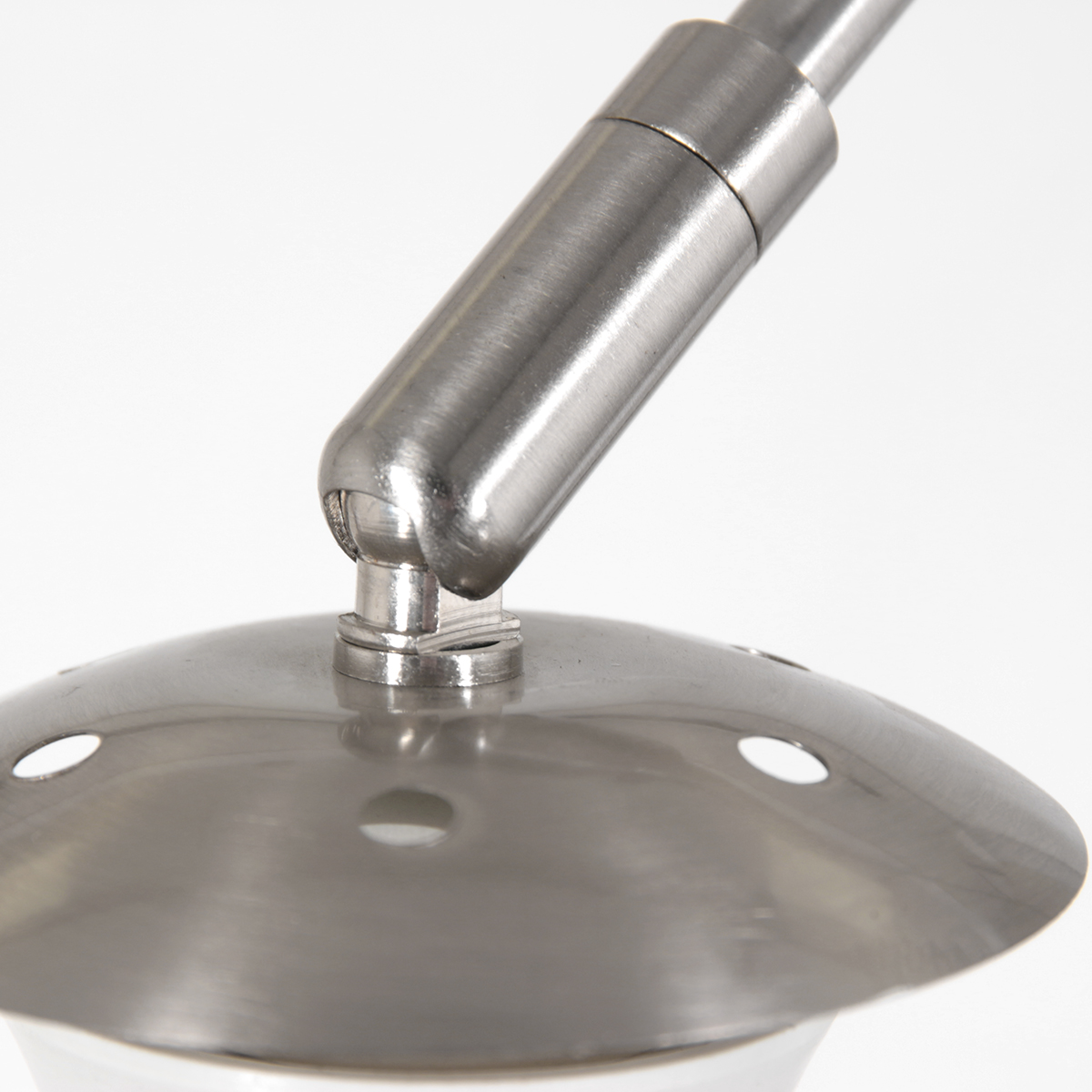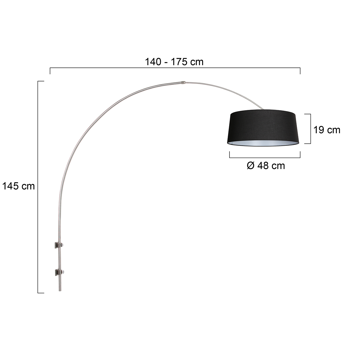 Esta lámpara de pared en color acero de la serie Sparkled Light es un atractivo moderno para la pared. La estructura de acero inoxidable cepillado tiene una altura de 145 centímetros y un arco ajustable en profundidad de 115 a 160 centímetros. Gracias a la base E27 inclinable, siempre podrás colgar la pantalla de manera recta y utilizar diferentes tipos de fuentes de luz de hasta 40 vatios. La lámpara se entrega completa con un cable de 200 centímetros de largo y un interruptor de encendido/apagado, para que puedas conectarla fácilmente.