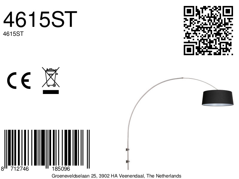 La pantalla de lino negro con un diámetro inferior de 48 cm, un diámetro superior de 44 cm y una altura de 19 cm le da a esta lámpara arco una apariencia poderosa y contemporánea. La forma cónica de la luz y la combinación de tela negra con un interior blanco crean un efecto luminoso elegante pero cálido. Perfecta como declaración sobre la mesa del comedor, junto al sofá o como un atractivo elegante en una sala de estar moderna.
