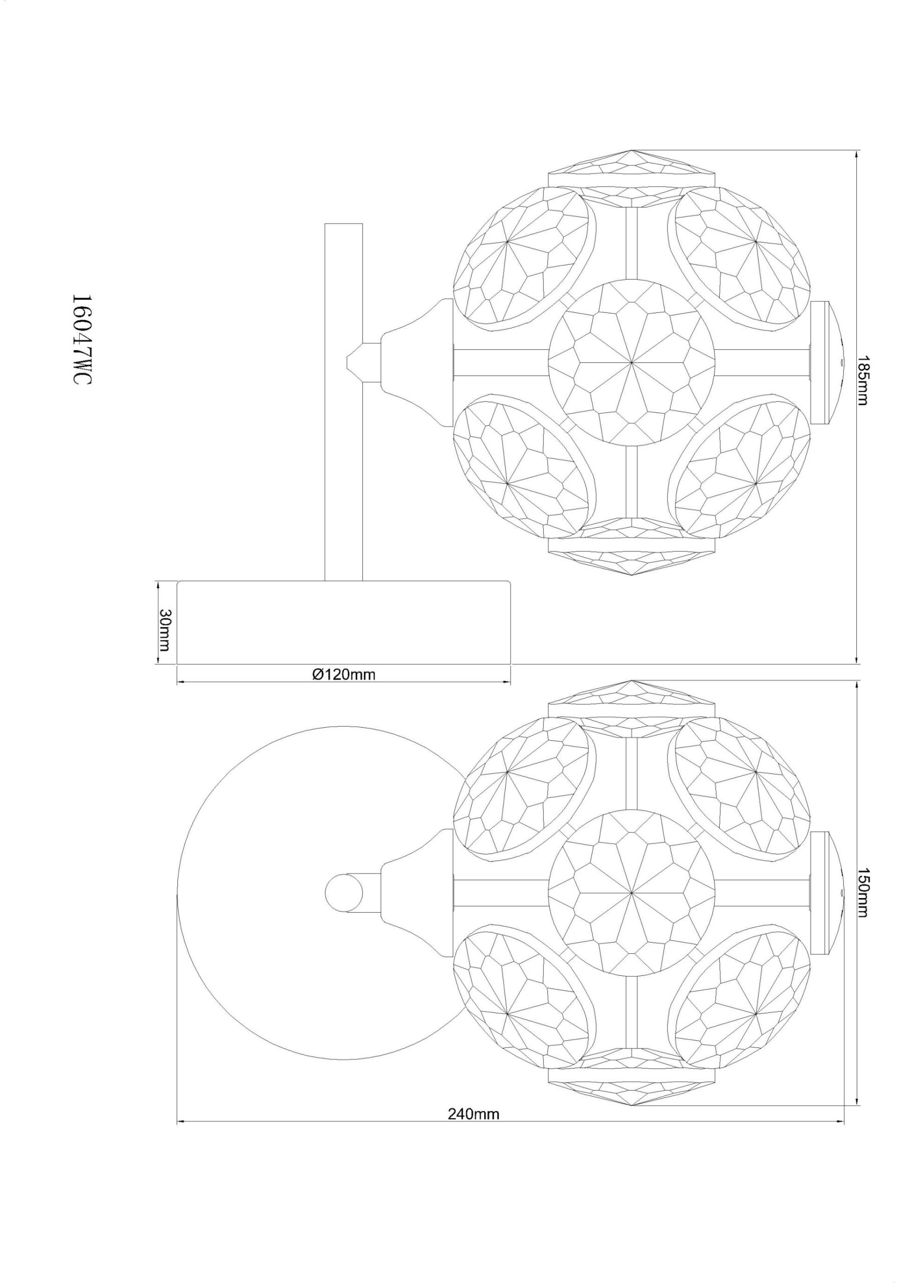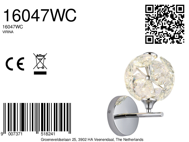 La lámpara de pared VIRINA combina un diseño elegante con tecnología de alta calidad, añadiendo acentos estilizados a tu interior. La carcasa metálica con acabado en cromo está equipada con una esfera de cristal K9 transparente. Estos cristales capturan la luz de una manera encantadora, resultando en un efecto luminoso brillante y lujoso. Con un ancho de 150 mm y una altura de 185 mm, esta lámpara es perfecta para habitaciones más pequeñas o como iluminación sutil en pasillos.