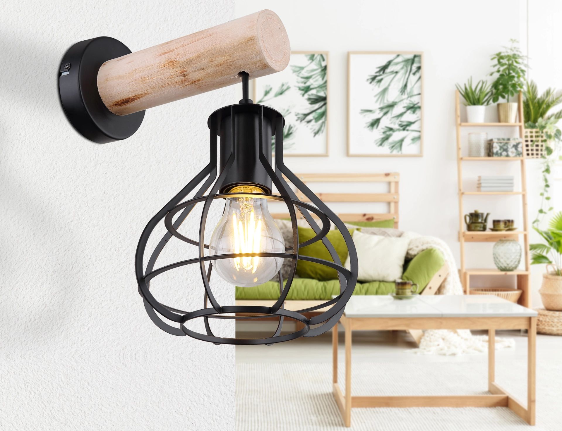 La pantalla en forma de jaula de la lámpara está sujeta a un hermoso trozo de madera y tiene un diámetro de 25 cm, lo que proporciona una experiencia de iluminación única y acogedora. Esta lámpara de pared no solo añade estilo a tu interior, sino que también crea una atmósfera cálida y agradable. Perfecta para usar en la sala de estar, dormitorio o pasillo. Da carácter y encanto a tu hogar con esta llamativa lámpara de pared.