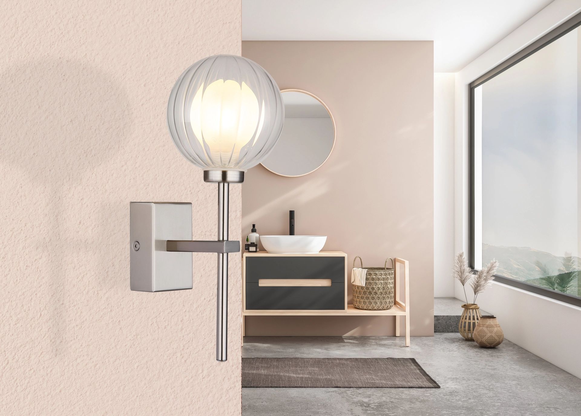 Esta lámpara de pared rectangular con una luz orientada hacia arriba ofrece una solución de iluminación moderna y elegante para tu baño. El cuerpo está fabricado en níquel cepillado y la pantalla tiene una bola de vidrio grabado con cristal transparente y un acabado satinado en el interior. Esto proporciona una agradable distribución de la luz y añade un toque elegante al espacio. Con unas dimensiones de 100 mm de ancho y 141 mm de alto, esta lámpara de pared es perfecta para cualquier baño.