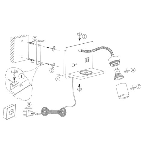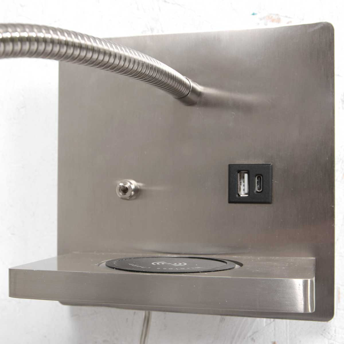 Aplique de pared gris con soporte y cargador para móvil Mexlite Upround acero