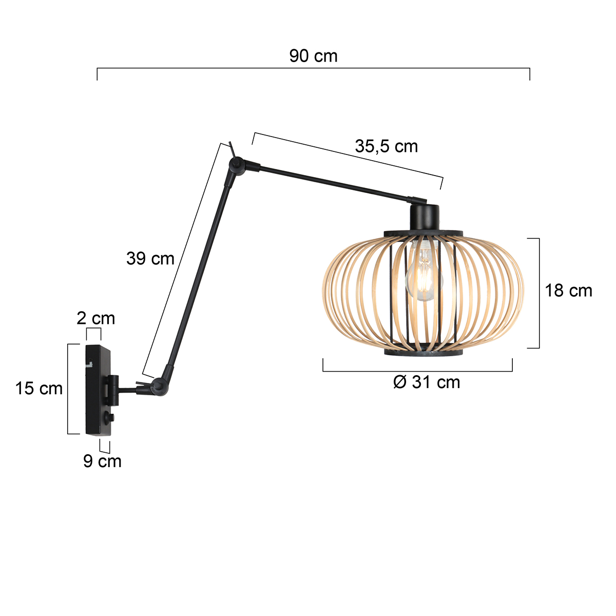 Esta lámpara de pared negra de la serie Prestige Chic está equipada con un largo brazo oscilante, lo que te permite dirigir la luz exactamente donde la necesitas. El brazo tiene un alcance de 88,5 centímetros y cuenta con cuatro puntos ajustables. Gracias al regulador incorporado en la placa de pared y el socket E27 inclinable, tienes el control total sobre la intensidad de la luz. Este accesorio se entrega sin pantalla y está provisto de un cable de conexión con enchufe.