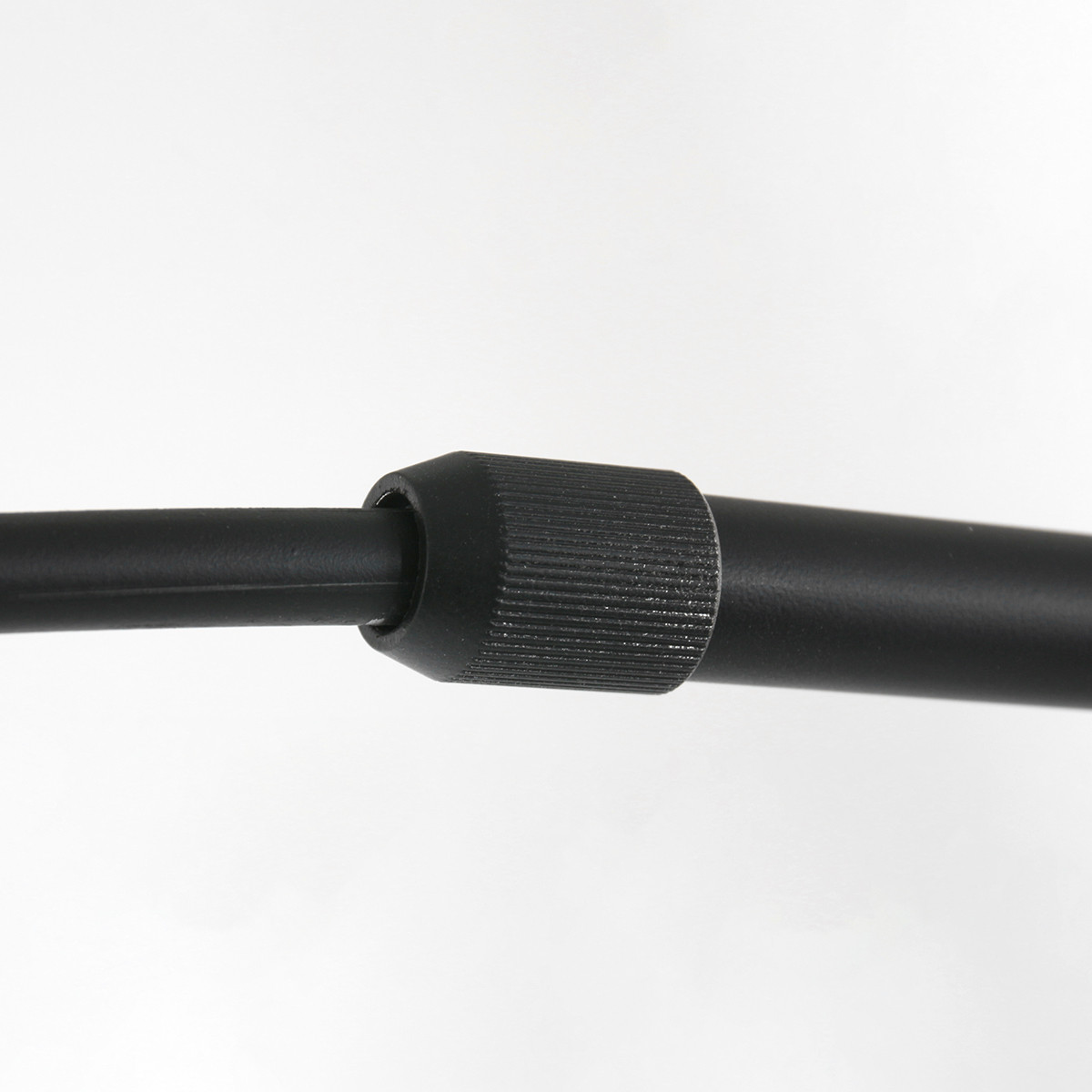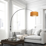 Una combinación de robustez y ambiente. La pantalla de terciopelo mostaza añade un resplandor cálido al interior, mientras que el marco negro le da un toque industrial. Gracias al amplio arco, la luz se dirige exactamente al lugar correcto, ideal para un acogedor rincón de lectura o una sala de estar elegante.