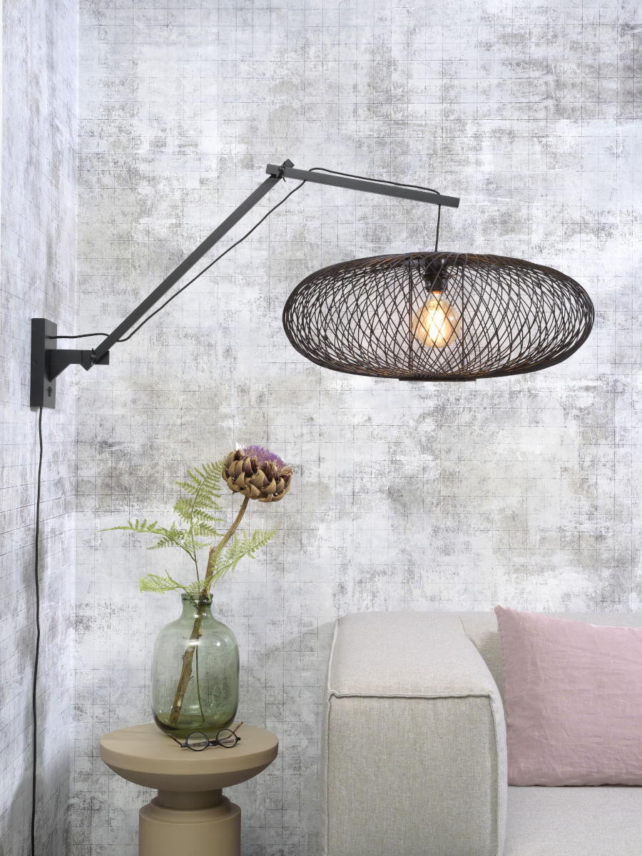 Aplique de pared redondo bohemio de bambú negro GOOD & MOJO Cango