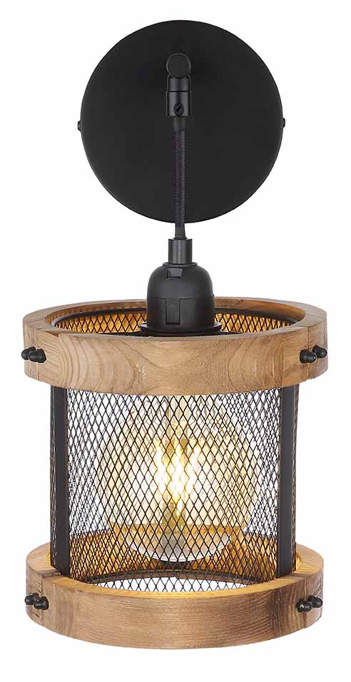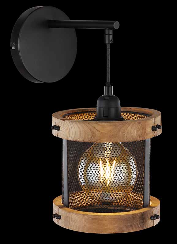 Esta lámpara de pared atemporal inspira con su hermoso diseño y atrae la atención. La lámpara consta de una pantalla con marco de madera y una malla metálica, además de un conector E27. Con una proyección de 23 cm, está sujeta a un cable negro y a un soporte. Los accesorios del conector E27 puedes elegirlos tú mismo, hasta una potencia máxima de 60 vatios, a través de tu iluminación.