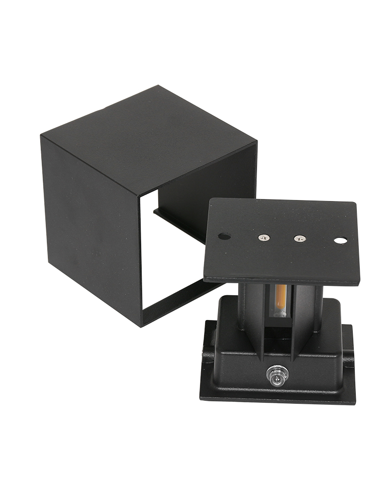 La lámpara exterior Cebu tiene un cuerpo de aluminio negro mate y un sensor de luz integrado. El diseño en forma de cubo tiene una altura de 9,8 cm y una profundidad de 10 cm. La lámpara se entrega con dos módulos LED fijos de 3 vatios cada uno, con una temperatura de color de 2700 Kelvin y una emisión de luz de 240 lúmenes. Gracias a su clasificación IP54, es resistente al polvo y a las salpicaduras de agua.