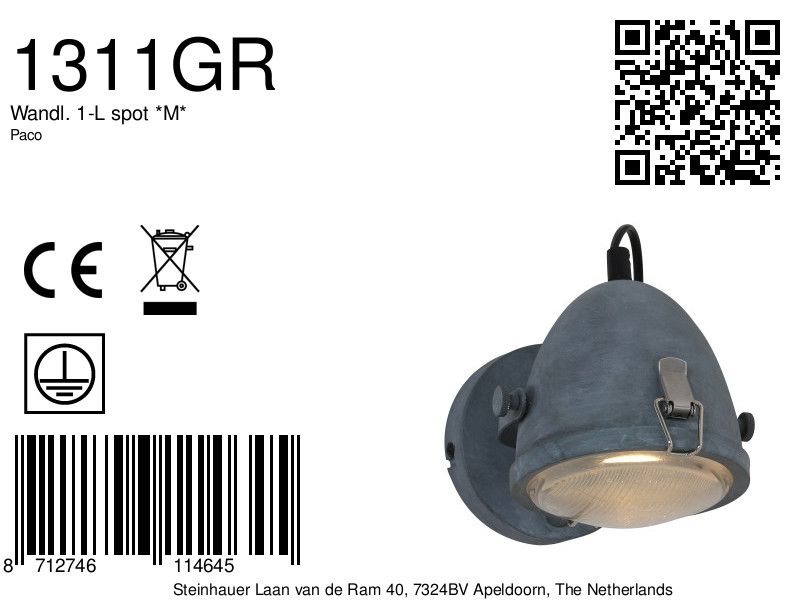 ¡Seguro que te preguntas quién es el fabricante detrás de Paco, ¡es Mexlite! Además, está fabricado en metal de color gris. Robusto, industrial y práctico. Tiene una apariencia fuerte gracias a los numerosos detalles, como los clips en la pantalla. Además, se adapta perfectamente a un diseño industrial. También es muy práctico, ya que la pantalla es ajustable. Y como punto a favor, tiene un aspecto de hormigón. En otras palabras, ¡Paco es la adición perfecta para tu interior! ¿Sabías que la fuente de luz se incluye? Consejo: coloca esta genial lámpara de pared en el pasillo. Al entrar, te encontrarás en un ambiente acogedor. ¿Dónde le darás un lugar a esta lámpara de pared industrial en tu casa?