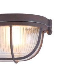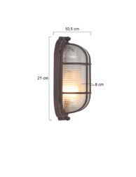 Esta robusta lámpara de pared y lámpara de techo de la serie Lisanne se inspira en las clásicas lámparas de barco. La carcasa tiene un acabado marrón óxido robusto y está equipada con una pantalla de vidrio. La lámpara cuenta con un casquillo E27 y es adecuada para fuentes de luz de hasta 40 vatios. Puedes instalar esta lámpara tanto en la pared como en el techo. La longitud es de 21 cm y sobresale 10,5 cm. Regulable con un regulador externo y una fuente de luz adecuada.