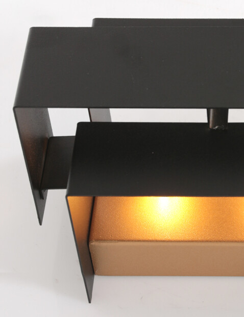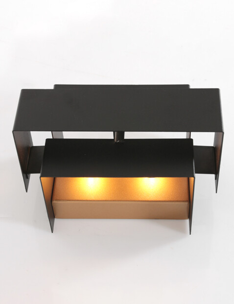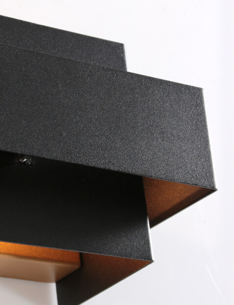 Ofrece una hermosa iluminación ambiental a tu pasillo, escalera o rellano con la lámpara de pared alargada de Steinhauer. La lámpara de metal negro consta de dos capas y tiene un interior dorado. Su ancho es de veinte centímetros y su altura de trece centímetros. La lámpara se integra perfectamente en una decoración moderna y se entrega con una bombilla LED.