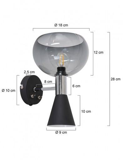 La lámpara de pared Anne Fastlåst cuenta con una elegante pantalla de vidrio ahumado con un diámetro de 18 cm y una robusta placa de pared. La lámpara está equipada con un casquillo E14 y es adecuada para fuentes de luz de hasta 40 vatios (no incluidas). Ambos reflectores son controlables por separado a través del interruptor de encendido/apagado en la placa de pared. Equipado con un cable de plancha y un enchufe para una instalación sencilla. Anne Lighting ofrece 2 años de garantía en esta lámpara de pared.