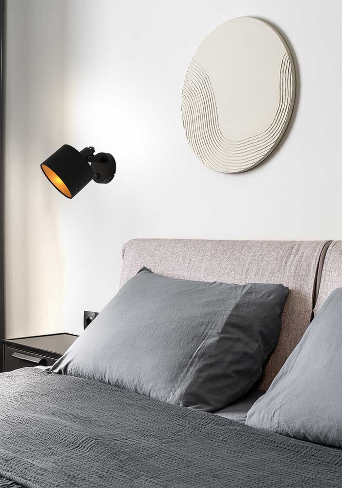 Es molesto cuando por la noche no puedes leer correctamente tu periódico, revista o libro. ‘Ornoir’ de Mexlite hace honor a su nombre. Esta lámpara de pared negra tiene un interior dorado. El diseño es tan práctico como elegante. ‘Ornoir’ se puede ajustar en todas direcciones, incluso hacia arriba. Ideal como lámparas de cama. ¡Sumérgete con esa revista y disfruta de esta agradable lámpara de lectura!