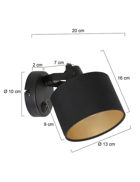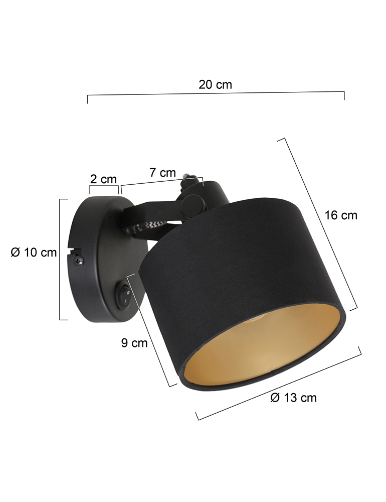 Este elegante foco de techo negro de 1 luz de la serie Ornoir tiene un diseño limpio con un acabado de lujo. La pantalla metálica con un diámetro de 20 cm está equipada con un revestimiento de lino negro y un interior dorado que crea un ambiente acogedor. Gracias a la cabeza ajustable, puedes dirigir la luz fácilmente, lo que permite que la lámpara se utilice tanto como foco de techo como lámpara de pared. El casquillo E14 permite colocar una fuente de luz de tu elección para la ambientación perfecta. Este foco de la marca Mexlite se entrega con 2 años de garantía.