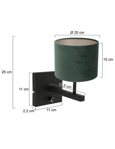 Una elegante lámpara de pared con un estilo moderno. La profunda pantalla verde de terciopelo añade un toque chic a tu interior, mientras que su diseño limpio proporciona un aspecto moderno y elegante.