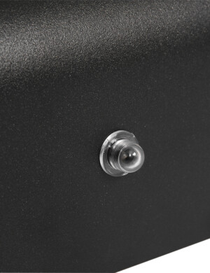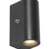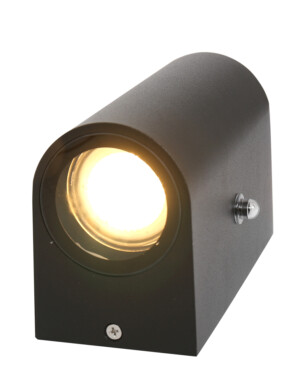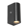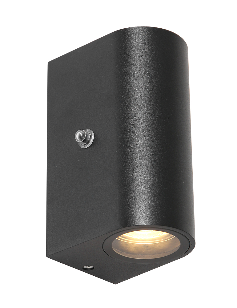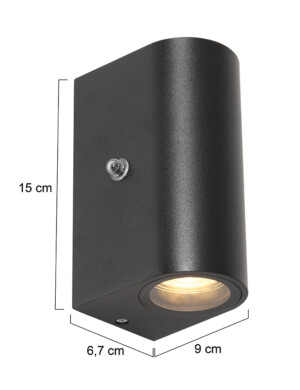 La lámpara exterior Poro está fabricada en aluminio con un acabado negro y una placa de vidrio. Esta lámpara de pared compacta tiene una altura de 15,5 cm y una profundidad de 9 cm. La lámpara está equipada con un sensor crepuscular y se entrega con dos fuentes de luz GU10 (345 Lúmenes, 2700 Kelvin). Gracias a la clasificación IP54, es resistente a la humedad y al polvo.