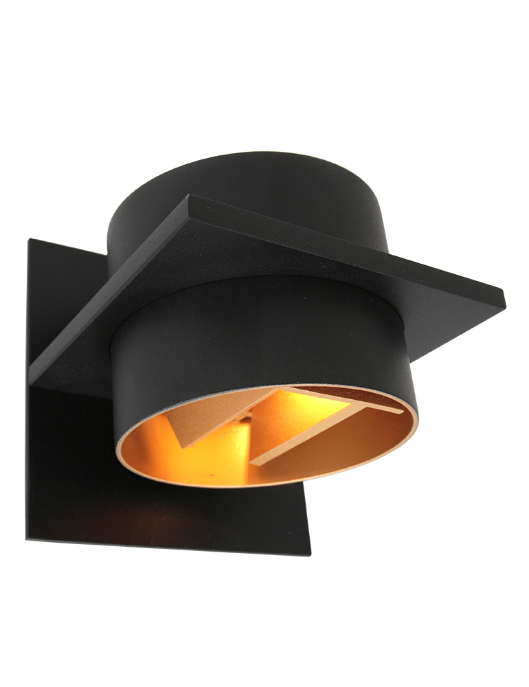 La lámpara de pared industrial negra de Steinhauer mide doce por doce centímetros. El interior está recubierto de una capa dorada. Esto proporciona un cálido brillo a la luz cuando la lámpara está encendida. La iluminación LED de bajo consumo está incluida. La lámpara no es ajustable, pero la intensidad de la luz se puede regular con un atenuador externo.