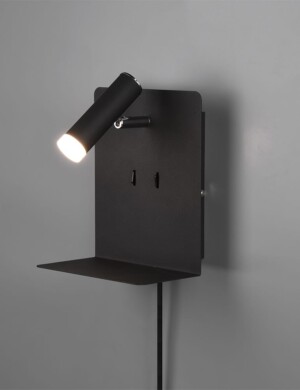 Aplique pared con USB Trio leuchten Element negro