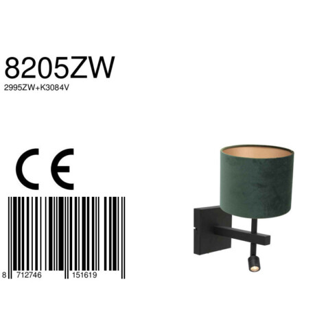 La lámpara de pared con pantalla verde y lámpara de lectura de la serie Stang de Steinhauer combina una apariencia moderna con funcionalidad práctica. El armazón de metal negro está equipado con un casquillo E27, adecuado para fuentes de luz de hasta 40W, y una lámpara de lectura separada de 1W, 2900 Kelvin y 100 lúmenes, ideal para una iluminación ambiental y enfocada.