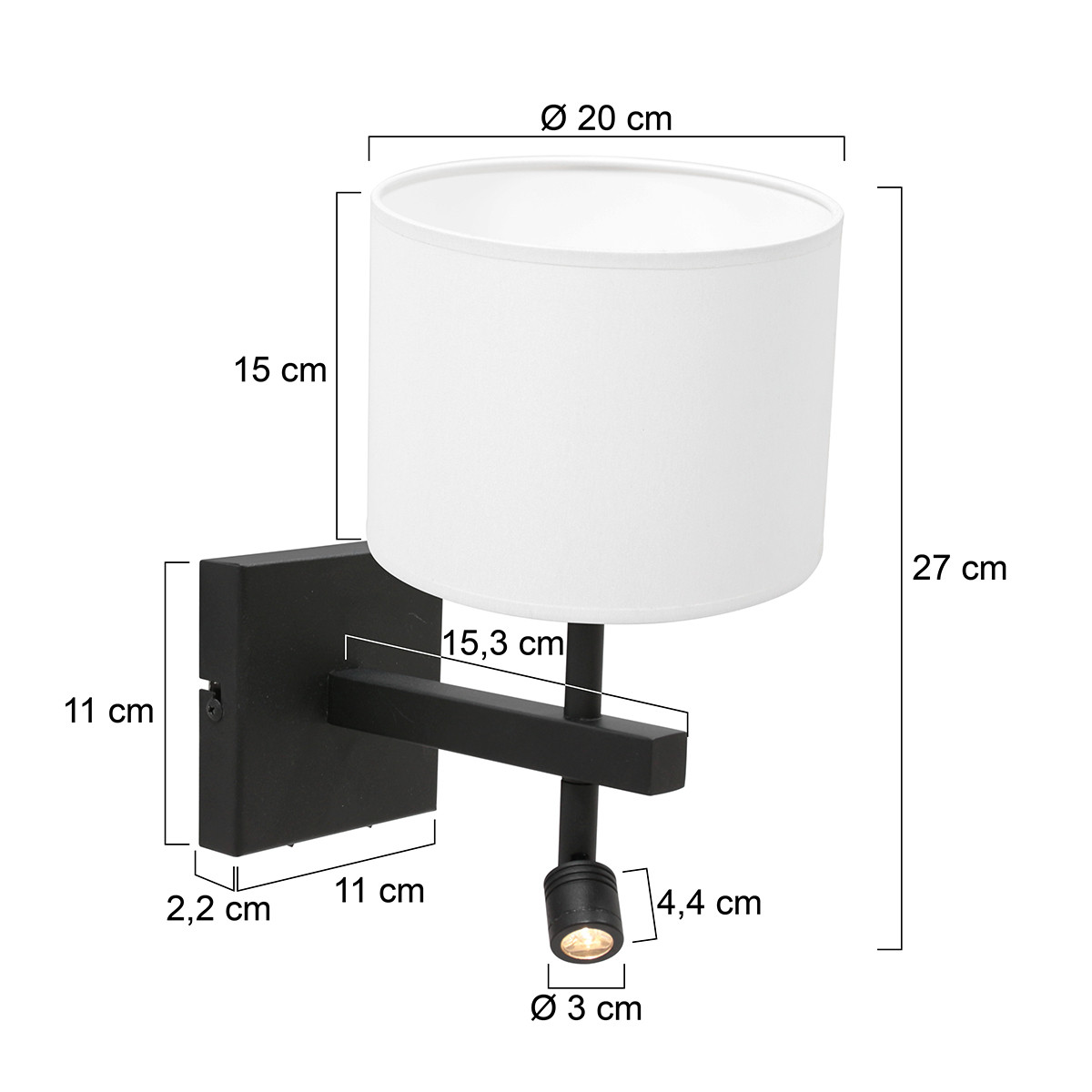La lámpara de pared con luz de lectura y pantalla blanca de la serie Stang de Steinhauer es una solución de iluminación funcional y elegante. El armazón de metal negro está equipado con un portalámparas E27, adecuado para fuentes de luz de hasta 40W. Además, la lámpara cuenta con una luz de lectura integrada de 1W, 2900 Kelvin y 100 lúmenes, ideal para iluminación dirigida.