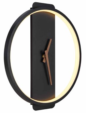 Aplique/reloj de pared en forma de anillo negro/marrón Globo Sussy