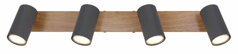 Descubre el encanto minimalista de nuestra serie de apliques Robby, que destaca por su diseño único y su esquema de colores. Esta lámpara se caracteriza por un soporte de techo rectangular inspirado en la madera de 56×6 cm, sobre el cual se han colocado cuatro impresionantes bombillas GU10 en un elegante color grafito mate. Gracias al casquillo GU10, puedes seleccionar fácilmente tus fuentes de luz favoritas, con una capacidad máxima de 35 vatios. Esta pieza promete no solo un valor estético para tu espacio, sino también la capacidad de personalizar según tus propias necesidades de iluminación.
