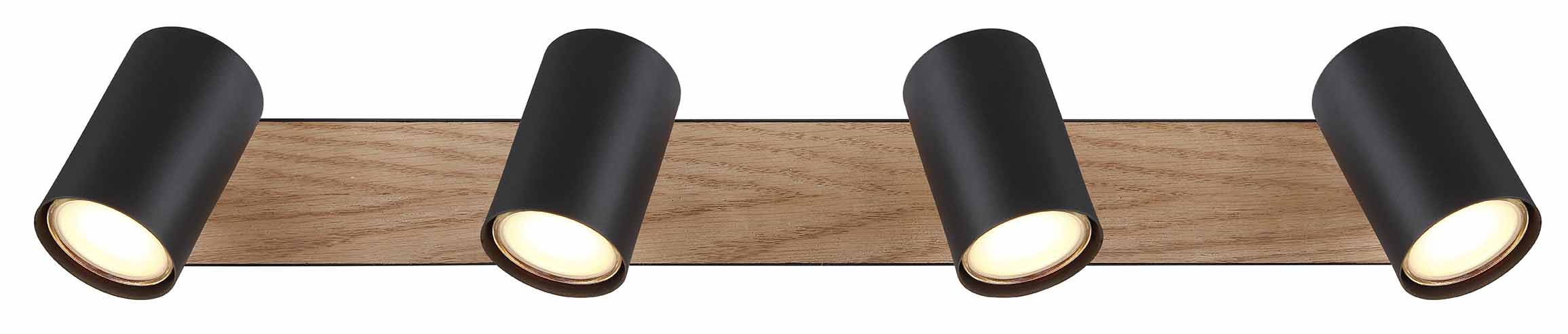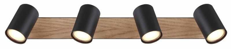 Eleve su espacio habitable con el foco de la serie Robby, una fusión de diseño refinado y esquema de color. Montado en un soporte de techo rectangular de metal negro mate y MDF con un acabado de madera (56 x 6 cm), este diseño incluye cuatro pantallas cilíndricas, cada una con un casquillo GU10. Estas bases ofrecen la posibilidad de elegir la fuente de luz ideal, con una potencia máxima de 35 vatios. Esta pieza de iluminación combina funcionalidad con atractivo estético, convirtiéndola en un excelente complemento para cualquier espacio.