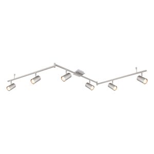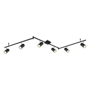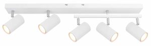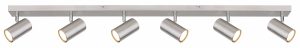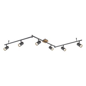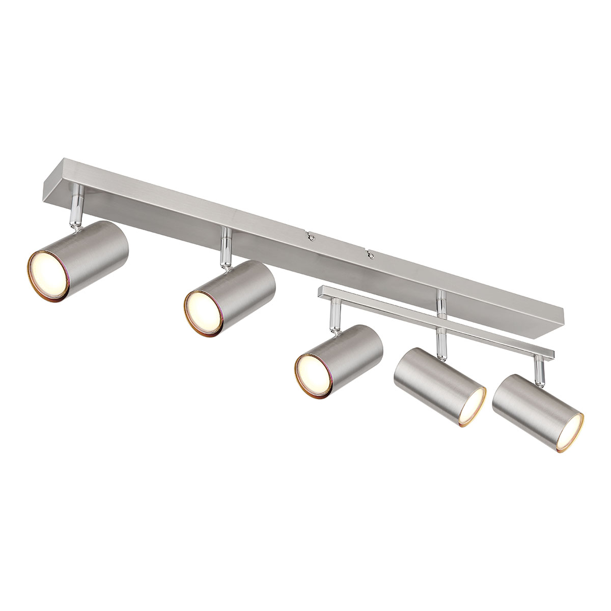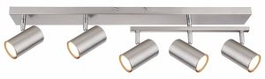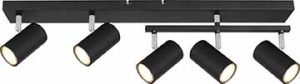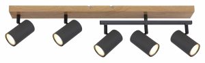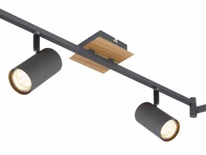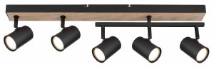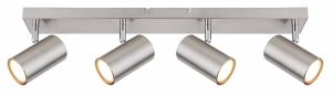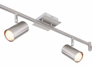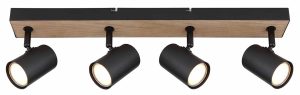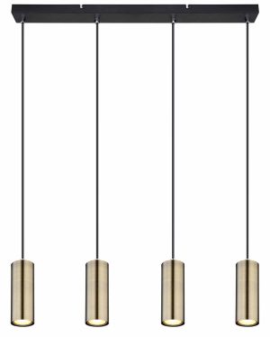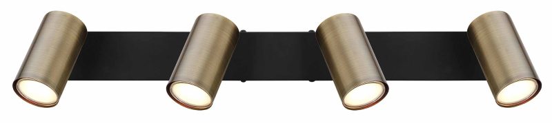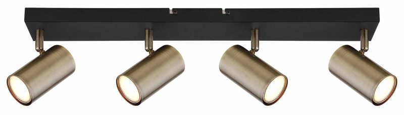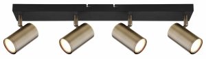 Descubre la simplicidad y elegancia de nuestro foco de la serie Robby, caracterizado por su diseño único y esquema de colores. Cuenta con un soporte de techo rectangular en negro mate (con dimensiones de 56x6cm) al que están fijadas cuatro conexiones GU10, cada una terminada con una pantalla cilíndrica en un encantador acabado de latón antiguo. Este foco te ofrece la flexibilidad de elegir tus fuentes de luz con el zócalo GU10, hasta una potencia máxima de 35 vatios. Enriquece tu espacio con este foco versátil y de diseño estiloso.