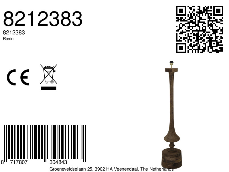 La lámpara de pie está equipada con un casquillo E27 (grande) y se entrega sin fuente de luz, lo que te permite elegir una opción energética eficiente. Este diseño no es adecuado para exteriores ni baños y cuenta con una clase de protección IP20, lo que significa que es a prueba de polvo. Recibirás 2 años de garantía en este producto. Crea la atmósfera perfecta en tu hogar con esta hermosa base de lámpara de madera y disfruta de la versatilidad que ofrece en tu interior.