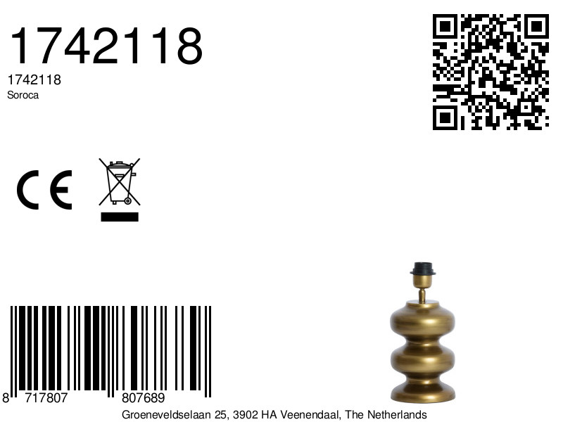 Base de lámpara de latón antiguo Light & Living Soroca