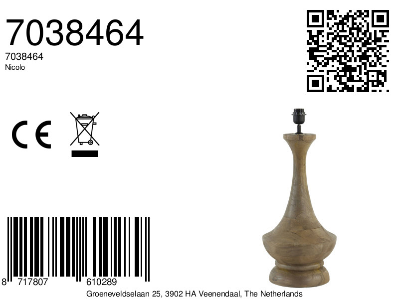 Base de lámpara de madera diseño fluido Light & Living Nicolo
