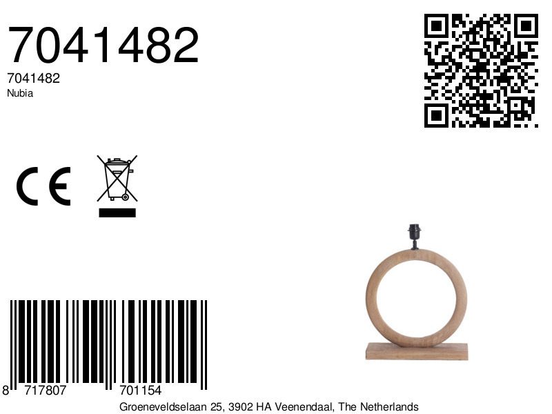 Base de lámpara de madera en forma de anillo Light & Living Nubia
