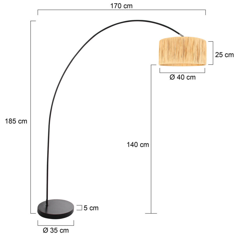 Lámpara de pie de arco negro con pantalla natural Mexlite Solva