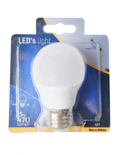La bombilla LED E27 5W LED’s Light tiene un consumo de 5 vatios y tiene un casquillo E27 (grande). Este modelo de bombilla no es regulable. La temperatura de color es de hasta 2700 Kelvin y la salida de luz es de 470 lúmenes.