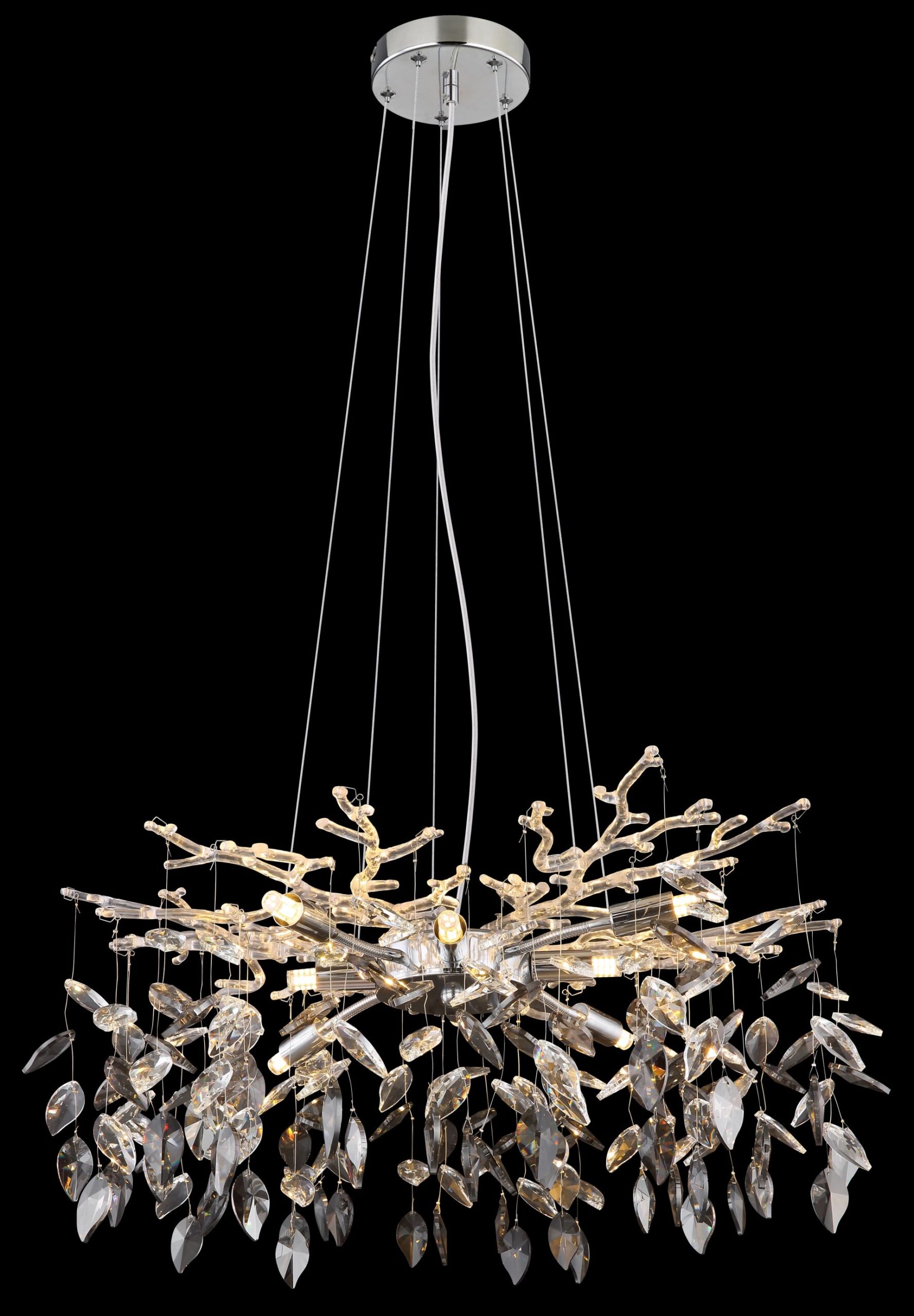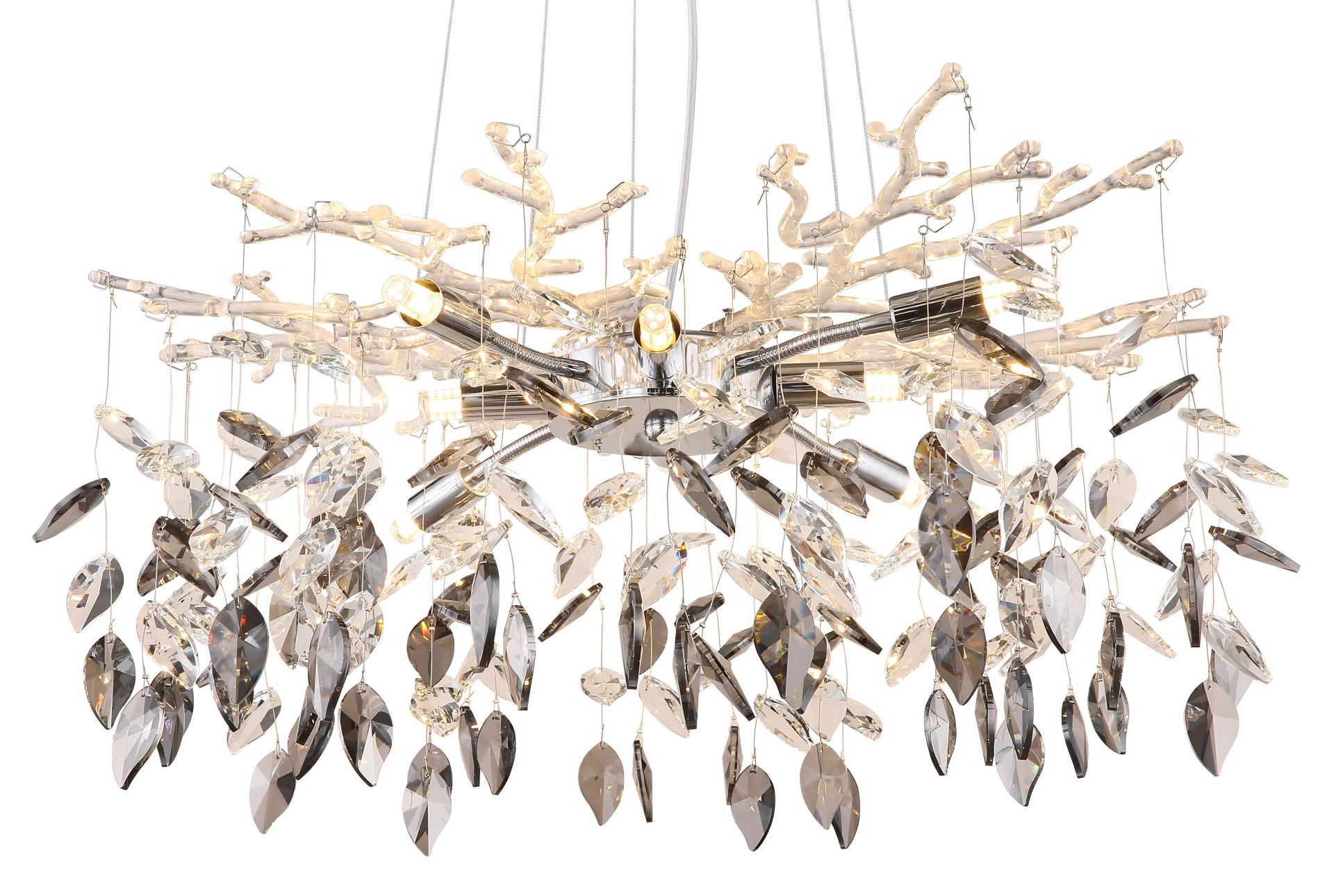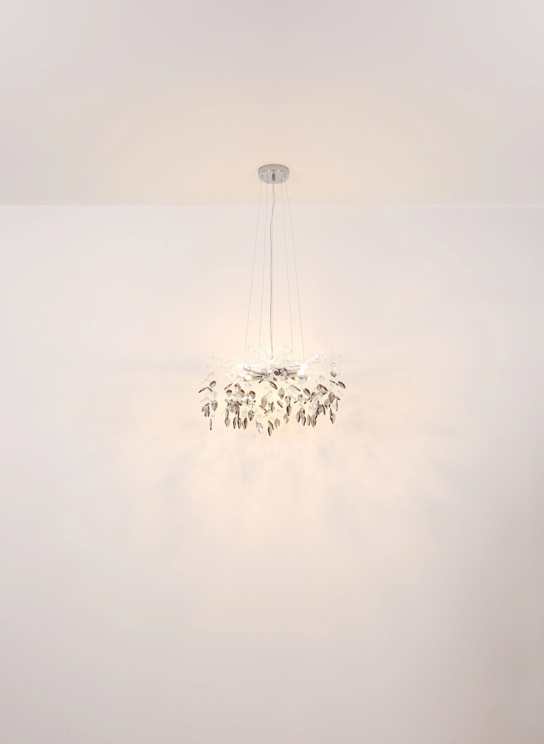 Elegante lámpara de araña de cromo con cristales Danna