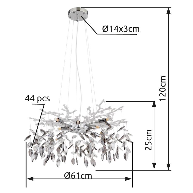 Una característica especial del candelabro DANNA es la posibilidad de ajuste en altura, lo que le permite adaptarlo perfectamente a la altura de su habitación. Con un diámetro de 610 mm, ofrece más que suficiente salida de luz para iluminar su espacio de manera brillante. Ya sea que lo coloque en la sala de estar, comedor o pasillo, este candelabro proporciona una ambiente elegante y acogedor. Complete su hogar con el candelabro DANNA y deje que sus invitados se impresionen con la luz cautivadora que emite.