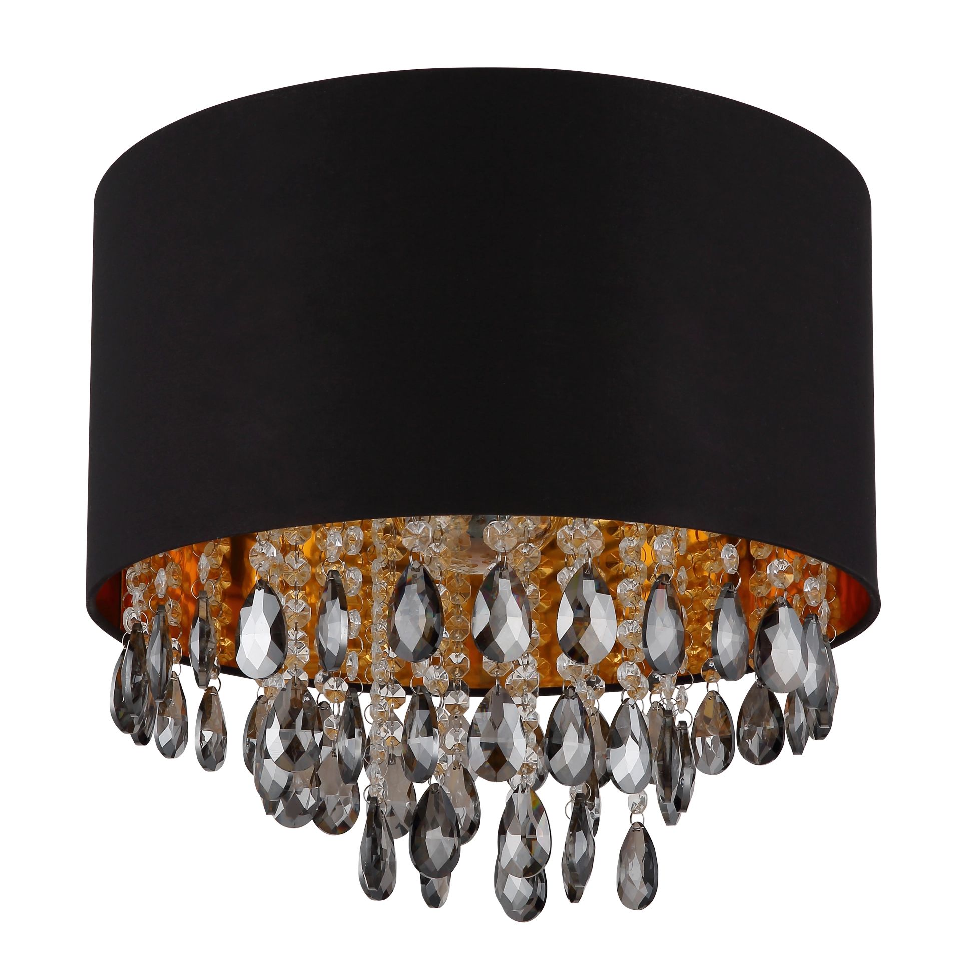 La lámpara de techo COLETTA es un verdadero punto focal con su elegante sombra de tela redonda y sus deslumbrantes cristales brillantes que cuelgan en su interior. La sombra negra mate combinada con los claros cristales ahumados proporciona un aspecto lujoso, perfecto para espacios de vida clásicos. Esta lámpara ofrece la posibilidad de colocar una bombilla E27, no incluida, para que puedas elegir la fuente de luz que mejor se adapte a tu estilo.
