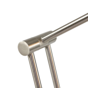 La lámpara de mesa de color acero de la serie Zodiac está equipada con un módulo LED reemplazable de 6 vatios (2700 Kelvin, 700 lúmenes). El regulador en la base permite ajustar la intensidad de la luz fácilmente. La altura es ajustable hasta 60 cm y la base tiene un diámetro de 15 cm. Con una longitud de cable de 130 cm, tienes suficiente flexibilidad para la colocación.