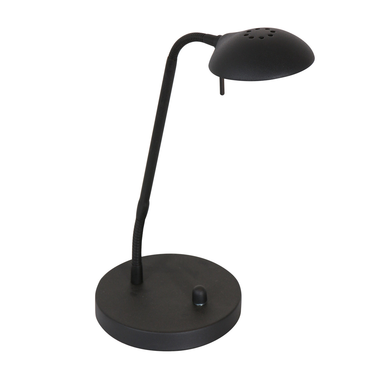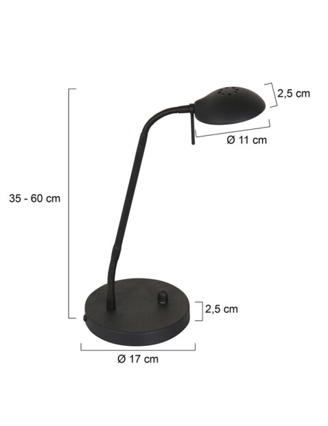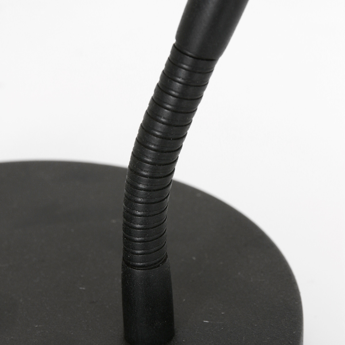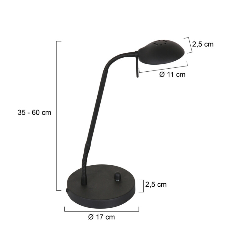 Esta moderna lámpara de mesa negra de la serie Biron ofrece una iluminación elegante y funcional para el hogar o la oficina. El armazón de acero negro mate cuenta con un brazo de lectura flexible de 48 centímetros, que permite dirigir la luz con precisión. El módulo LED integrado de 8 vatios emite una luz blanca cálida de 2700 Kelvin con una salida de luz de 650 lúmenes. Para una comodidad óptima, la lámpara está equipada con un regulador de luz. La base tiene un diámetro de 17 centímetros y el cable mide 185 centímetros de largo.