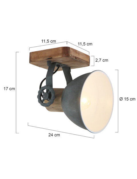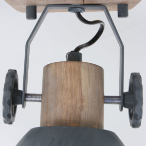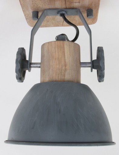 El foco de techo o pared industrial gris Gearwood de Mexlite combina materiales robustos y funcionalidad. La pantalla metálica gris brillante se complementa con acentos de madera para un toque cálido. Gracias a las ruedas ajustables, el foco es giratorio e inclinable, lo que te permite ajustar fácilmente la entrada de luz. Equipado con un casquillo E27, adecuado para todas las fuentes de luz de hasta 40 vatios. La pantalla tiene un diámetro de 15 cm y una altura total de 19 cm. Regulable con un atenuador externo.