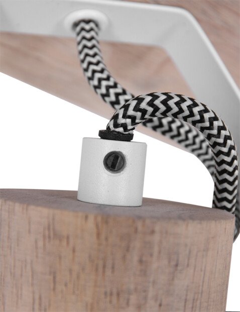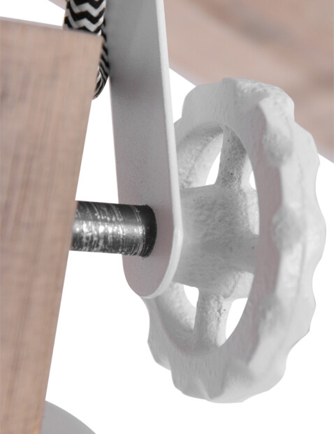 Foco industrial blanco de metal y madera de caucho Mexlite Gearwood