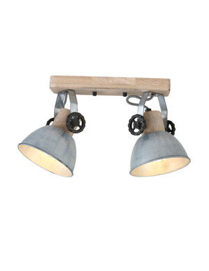Práctico y hermoso, dos robustos focos ajustables en un marco resistente de madera de caucho gris marrón. ¡Este foco de techo Gearwood también se puede colocar en la pared! Las dos pantallas metálicas en forma de semicírculo con un acabado mate en color níquel se pueden girar e inclinar hacia donde desees. Para esto, utilizas pequeños ‘engranajes’ industriales. Así puedes aportar ambiente y al mismo tiempo iluminar una obra de arte.